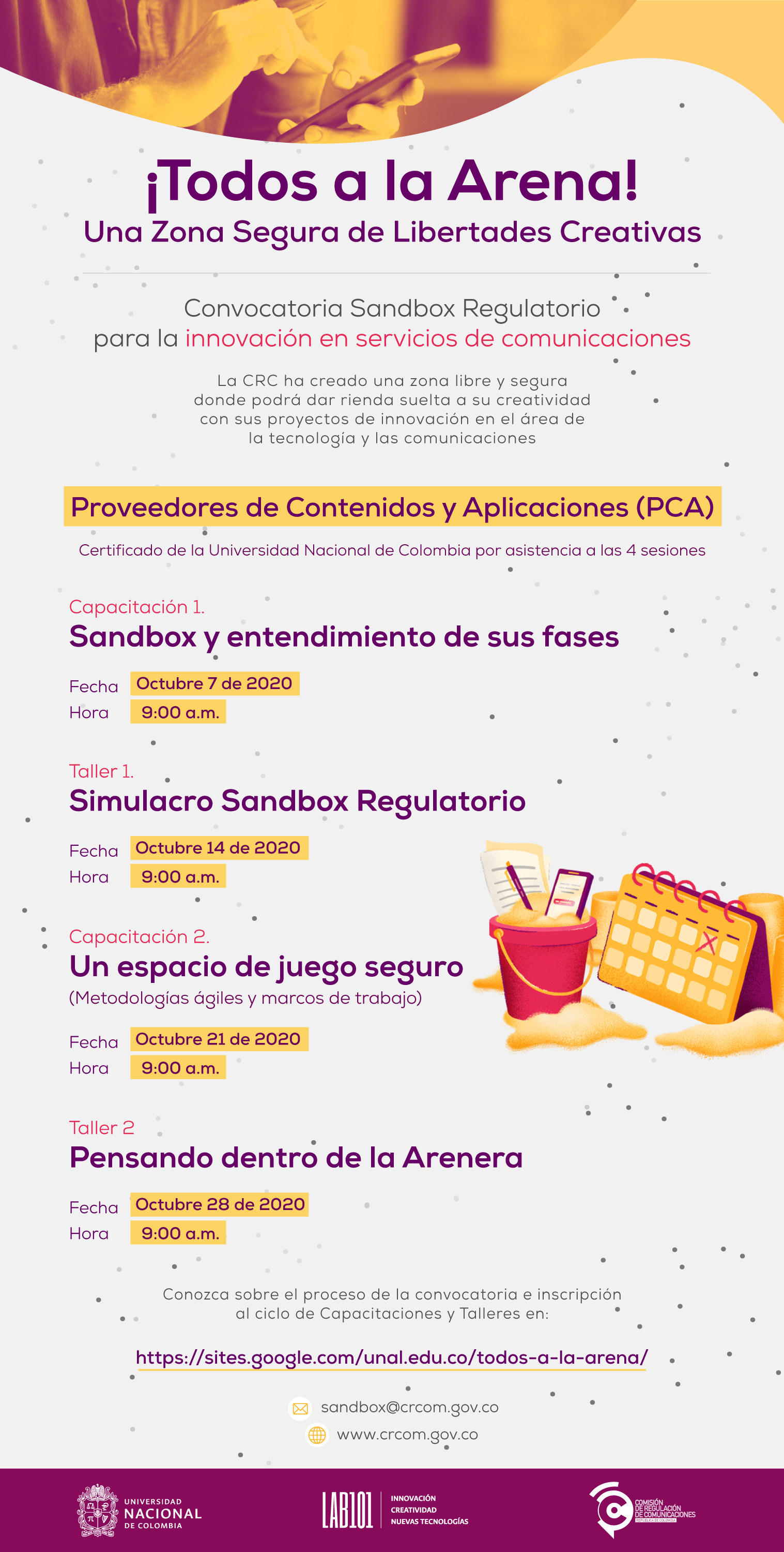 [RedesComCol] Fwd: Participa en el Ciclo de talleres y capacitaciones sobre Sandbox Regulatorio y Herramientas de Innovación. ¡Todos a la Arena!